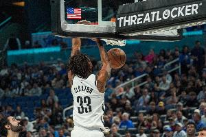 籃網中鋒克拉克斯頓上半場效率不俗但罰球很鐵,他打了16分半鐘,8投5中、罰球5中2,得到12分9籃板4助攻,正負值高達+20!