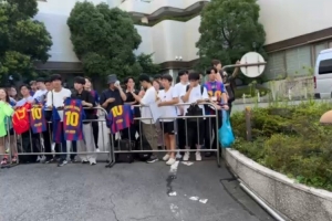 巴薩前往日本,開啟亞洲季前賽之旅,科貝電臺(tái)社媒曬出視頻,一些日本球迷在酒店門口等待巴薩球員,希望得到簽名,亞馬爾的10號(hào)和19號(hào)球衣最多。