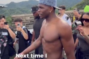 愛德華茲:“長城太TM高了,我不說謊,這就像訓(xùn)練一樣。下次來我要用跑的,今晚我要訓(xùn)練,所以現(xiàn)在要省著點(diǎn)勁兒?!?/p>
