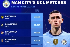 體育資訊8月29日訊 本賽季歐冠聯(lián)賽階段對(duì)陣抽簽結(jié)果出爐,德國(guó)轉(zhuǎn)會(huì)市場(chǎng)盤點(diǎn)了曼城對(duì)手的身價(jià)。