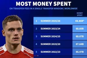 3、2024/25夏窗:80.7億
