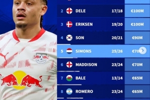 體育資訊8月30日訊 本周五,熱刺官方宣布以6000萬歐元從萊比錫簽下哈維-西蒙斯。根據(jù)德國轉(zhuǎn)會市場提供的數(shù)據(jù),西蒙斯的身價為7000萬歐元,在熱刺隊史足以排在第5位。
