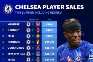 據(jù)德轉(zhuǎn)統(tǒng)計(jì),切爾西今夏賣(mài)人總收入將達(dá)到3.165億歐元,冠絕全球,比賣(mài)人榜第二位的伯恩茅斯多了近8000萬(wàn)歐元。