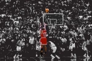 1997年總決賽第一場(chǎng),郵差被皮彭“星期天不上班”,罰球失手,喬丹射中絕殺,回頭霸氣揮拳。