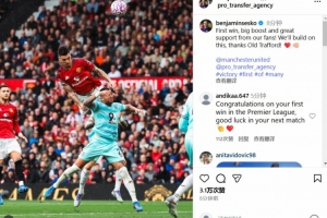 在社交媒體上,舍什科寫道:賽季首勝鼓舞人心,我們有來自球迷的鼎力支持。我們將在老特拉福德再接再厲!