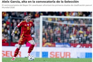 體育資訊8月31日訊 西班牙國家隊發(fā)布官方公告,宣布補招勒沃庫森28歲中場阿萊克斯-加西亞進世預(yù)賽名單。