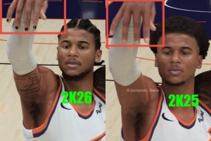 有網(wǎng)友細(xì)心發(fā)現(xiàn)指出,在2K26的游戲畫面中,2K給杰倫-格林細(xì)心地在其指甲蓋上涂了指甲油;而在2K25中,杰倫-格林是沒有指甲油的。