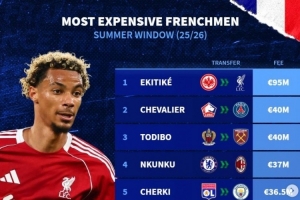 體育資訊9月8日訊 今夏主流聯(lián)賽轉(zhuǎn)會(huì)窗已經(jīng)關(guān)閉,《轉(zhuǎn)會(huì)市場(chǎng)》也列出了法國(guó)球員的今夏轉(zhuǎn)會(huì)費(fèi)最貴情況。