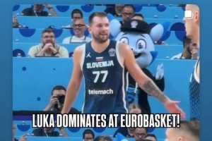 NBA官方與FIBA官方發(fā)出東契奇本場比賽高光集錦,封面圖配文為:“盧卡稱霸歐錦賽!”