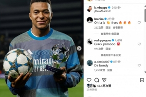 本場比賽姆巴佩上演帽子戲法,賽后他也在社媒曬出與全場最佳獎(jiǎng)杯以及比賽用球的合影。