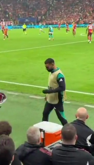 當(dāng)利物浦控球時,現(xiàn)場55000加拉塔薩雷球迷爆發(fā)出巨大噓聲,薩拉赫被拍到被噓聲驚擾,甚至捂住耳朵的畫面。