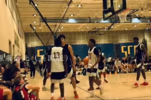 當(dāng)時是Veritas Academy的進(jìn)攻回合,張博源和對手(白隊13號球員)對位,兩人胳膊糾纏在一起,隨后發(fā)生口角,還升級為肢體沖突,張博源被沖上來的隊友護(hù)住,他的隊友們將對手推開,更多人加入沖突,導(dǎo)致比賽停止,教練也參與了進(jìn)來。