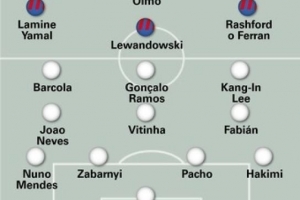 在萊萬多夫斯基或費蘭-托雷斯的懸念之外(也不排除兩人同時上場),另一個焦點在后防,庫巴西和埃里克-加西亞是熱門人選,除非阿勞霍再次首發(fā)。
