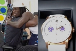 詹姆斯首先贈予Kai Cenat的一只價值20萬美元的愛彼手表,隨后又向全體直播團(tuán)隊成員每人贈送了一雙個人第23代簽名戰(zhàn)靴Nike LeBron 23。
