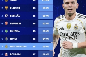 體育資訊10月1日訊 德轉(zhuǎn)更新世界U18球員身價(jià)榜,亞馬爾2億歐高居榜首。