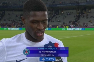 此役努諾-門德斯踢滿全場送出助攻,幫助巴黎取勝,他當(dāng)選本場比賽最佳球員。