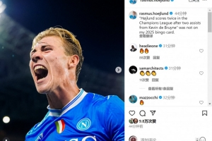 霍伊倫社媒曬出慶祝進(jìn)球的照片,并發(fā)文調(diào)侃:“霍伊倫在歐冠比賽中梅開(kāi)二度,還都是德布勞內(nèi)的助攻——這完全不在我2025年的劇本之中?!?/p>