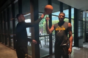 湖人向球員們發(fā)起了指尖轉(zhuǎn)球挑戰(zhàn),里夫斯的轉(zhuǎn)球時(shí)間最長,東契奇搞怪破壞了八村塁的轉(zhuǎn)球。