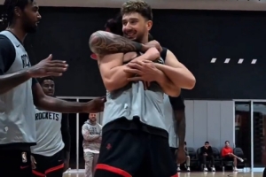 體育資訊10月2日訊 近日在火箭隊(duì)內(nèi)的訓(xùn)練中申京面對亞當(dāng)斯的防守貢獻(xiàn)了一記暴扣,之后又在后者面前投進(jìn)了一個(gè)三分,結(jié)果慘遭海王“鎖喉”。
