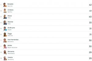歐冠歷史助攻榜前十(數(shù)據(jù)來自歐冠官網(wǎng))