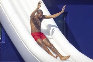 女主持人:“休賽期我沒(méi)看到任何游艇滑梯的狗仔照。我有點(diǎn)失望?!?/p>