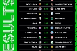 歐協(xié)聯(lián)首輪比賽結果: