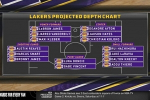 美媒曬湖人新賽季15人大名單陣容人員儲備: