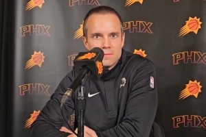 談及球隊(duì)提速打法,奧特特別提到了布克的一個(gè)回合表現(xiàn):對(duì)手完成扣籃后,布克僅用6秒就完成快攻上籃。