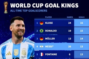 體育資訊10月4日訊 2026年世界杯用球“三重浪”發(fā)布,德國轉會市場列出了世界杯歷史射手榜,前十名中有兩名現(xiàn)役球員——梅西和姆巴佩。