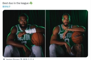 體育資訊10月5日訊 凱爾特人官推曬出杰倫-布朗和塔圖姆新賽季的定妝照。