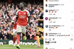 這是薩卡英超第200場(chǎng)里程碑之戰(zhàn),同時(shí)也是薩卡英超參與進(jìn)球數(shù)第100個(gè)。賽后,薩卡更新社媒曬照紀(jì)念自己英超第200次出場(chǎng),并配文:200場(chǎng)??