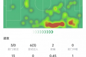 馬斯坦托諾本場數(shù)據(jù):3次射門0射正,17次對抗8次成功,獲評6.7分
