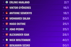 哈蘭德成為本賽季英超僅需的大熱門,這也反映在賠率上,因?yàn)榕餐涫謯Z得英超金靴的賠率僅為2/7。