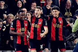在英超第7輪率先開打的一場比賽中,伯恩茅斯憑借塞梅尼奧的梅開二度以及小克魯伊維特的進(jìn)球,主場逆轉(zhuǎn)富勒姆。首輪輸給利物浦時,伯恩茅斯曾被很多媒體預(yù)測為本賽季的降級大熱門,但伊勞拉和弟子們很快以6輪不?。?勝2平)的表現(xiàn)粉碎了輿論的質(zhì)疑。擊敗富勒姆之后,伯恩茅斯一度占據(jù)英超積分榜第二位(目前排名第4),創(chuàng)造了隊史頂級聯(lián)賽最佳開局。