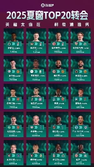 夏窗TOP10:轉(zhuǎn)會費/新賽季數(shù)據(jù)