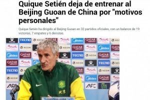體育資訊10月6日訊 日前,西班牙媒體《馬卡報》、《世界體育報》報道了北京國安主帥塞蒂恩因“個人及家庭原因”辭職的消息。