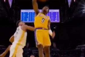 在本場比賽中,布朗尼上演了單臂補扣,賽后,詹姆斯也在INS轉(zhuǎn)發(fā)了這段視頻。