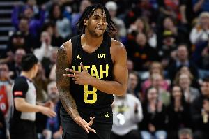 本場比賽,爵士球員森薩博表現(xiàn)出色,尤其是外線十分神準(zhǔn),在26分鐘的時間里,投籃15中9,三分球10中6,拿到24分3籃板1助攻1搶斷1蓋帽的數(shù)據(jù)。