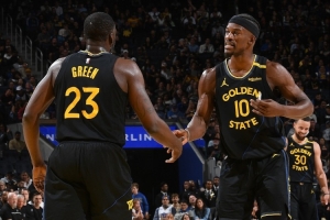 本賽季勇士首發(fā)有四人至少35歲,庫里、巴特勒、追夢(mèng)和霍福德。
