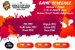 2026女籃世界杯預(yù)選賽武漢賽區(qū)日程出爐,比賽屆時(shí)將在武漢體育中心體育館進(jìn)行,每個(gè)比賽日三場(chǎng)比賽。中國(guó)隊(duì)日程安排如下(開球時(shí)間待定):