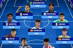 體育資訊10月10日訊 U20世界杯正在進(jìn)行之中,多名小將展示出了非凡的才華。德國轉(zhuǎn)會市場盤點(diǎn)了本屆賽事身價(jià)最高陣,莫拉、門多薩在列。