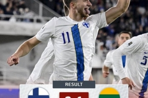 體育資訊10月10日訊 世預賽歐洲區(qū)小組賽G組第7輪比賽,芬蘭在主場以2-1的比分戰(zhàn)勝立陶宛。本場比賽之后,先賽的芬蘭暫時位居小組榜首。