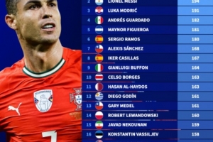 體育資訊10月10日訊 德國轉(zhuǎn)會市場盤點了新世紀國家隊出場數(shù)排行情況,C羅以223場居首,梅西194場次之,莫德里奇191場位居第三。