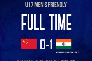 特別是第10分鐘時,印度隊(duì)場上隊(duì)長、司職中前衛(wèi)的10號岡特在反擊中于中路偏左區(qū)域帶球突進(jìn),然后在禁區(qū)前一腳大力抽射,球擊中近側(cè)球門角后彈出,驚出國少隊(duì)員們一身冷汗。球彈回到球場內(nèi)后,又是印度隊(duì)員搶到點(diǎn),再次組織進(jìn)攻,連續(xù)三腳射門,幸虧門將和防守球員全力阻擋,確保國少隊(duì)大門不失,這波進(jìn)攻讓國少隊(duì)在場上顯得有些難堪。