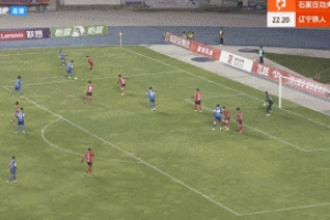 比賽第23分鐘,安屹斐過人后倒三角回敲,劉樂門前兩連擊破門,石家莊功夫1-1扳平遼寧鐵人。
