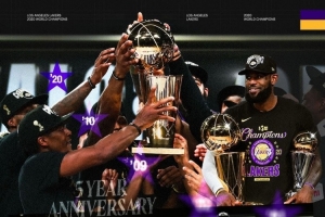 湖人社媒寫道:“2020年10月11日,洛杉磯湖人隊擊敗邁阿密熱火,以總比分4比2贏得總冠軍,拿到隊史第17冠?!?/p>