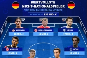 前鋒:萬(wàn)納爾(埃因霍溫,1800萬(wàn)歐)、霍勒巴赫(美因茨,1200萬(wàn)歐)、尼古拉斯-庫(kù)恩(科莫,1700萬(wàn)歐)