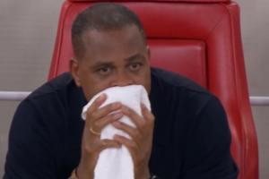 隨后,他就一直坐在教練席上不斷地用毛巾抹臉,眼眶泛紅,場上隊(duì)員和工作人員與馬寧發(fā)生沖突時(shí)他也只是看著。