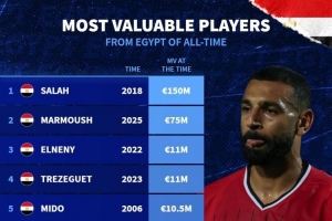 埃及球員德轉(zhuǎn)歷史最高身價(jià)排名: