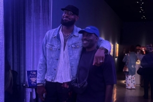 詹姆斯曬出了他和繪畫藝術(shù)家Derek Fordjour在后者畫展上的合影,并寫道:“恭喜我的兄弟!我為你感到無比驕傲,我看到和聽到的一切讓我深受啟發(fā)!感謝你的邀請!??????”